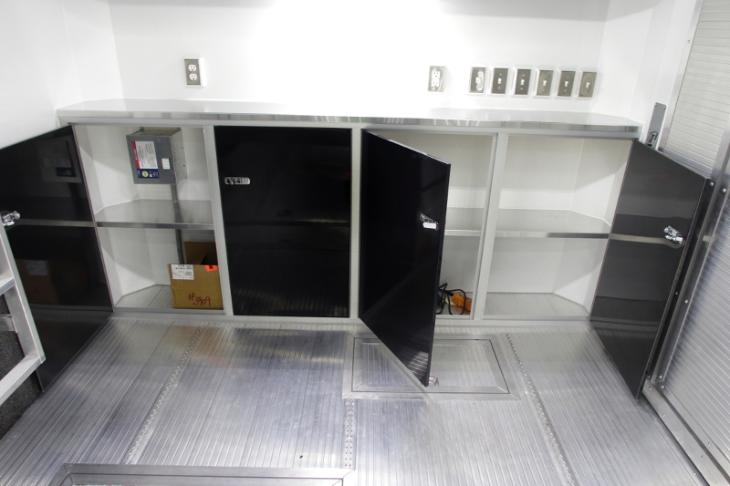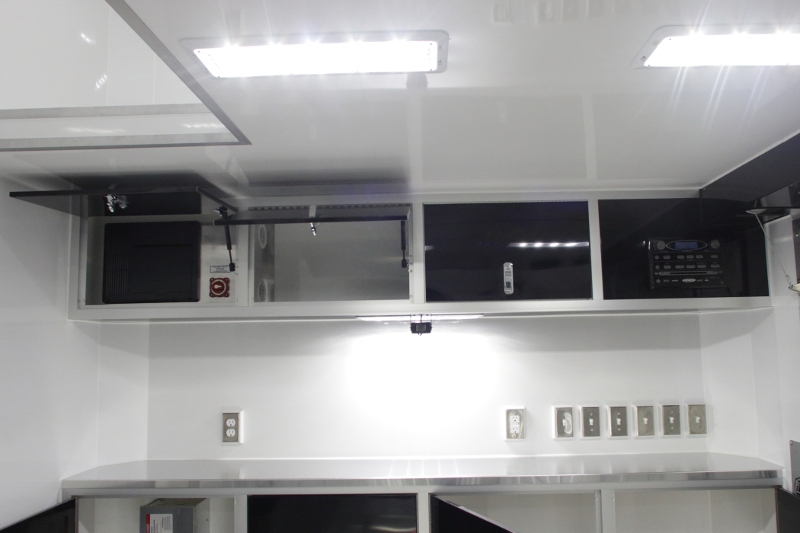 Brad Sellers, our custom stacker specialist designed this custom stacker trailer specifically for the owner’s needs. This incredible 24’ car hauler has a little bit of everything under the roof. Featuring 2 escape doors for getting out of your car & allowing great access for tying them down. The black base and upper cabinets make a bold statement. Stereo Package and no shortage of lights inside or outside for this beauty, it’s loaded with LED’s. We’ve got 34” high carpet on interior walls and much more. If you haven't already, take a good look at the extreme value that RPM Trailer Sales offers, you might just be surprised at just how much trailer you can get for your hard-earned dollar.